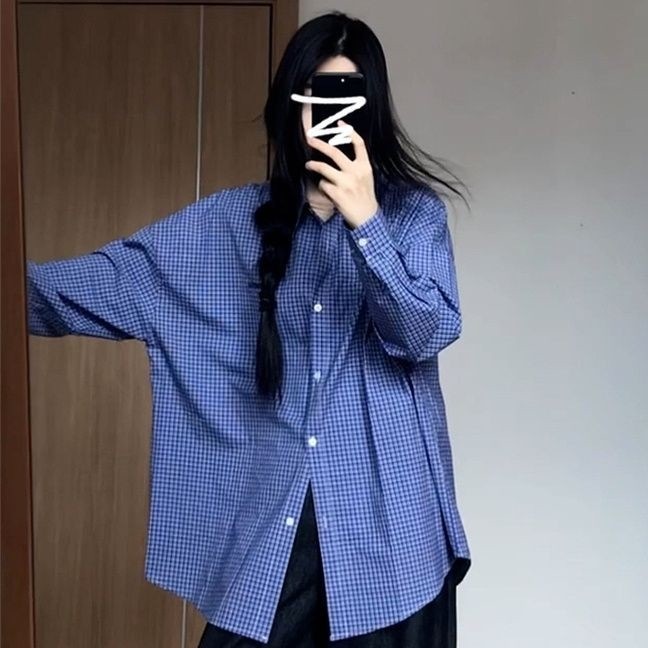 青 チェック シャツ レディース 長袖 アウター ゆったり ジェンダーレス ファッション 高級 レトロ シャツ カーディガン アウター641326