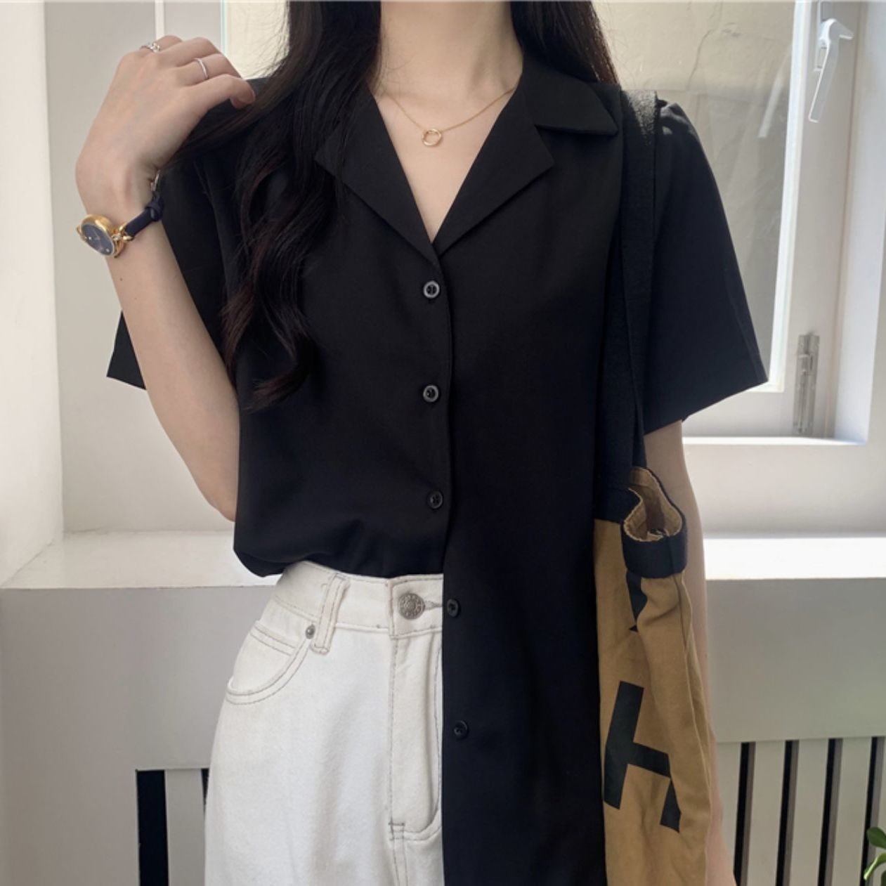 ゆったり 半袖 白 シャツ レディース デザイン性 レトロ フレンチ シャツ 学生 トップス731356