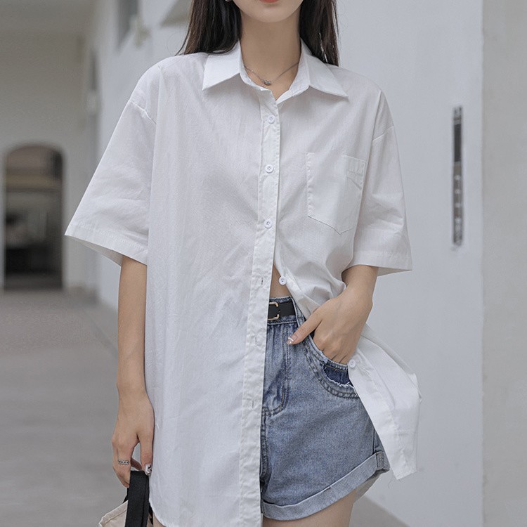 薄手 半袖 白 シャツ レディース アウター ゆったり 塩系 ミドル丈 シャツ おしゃれ 2026 トップス1414