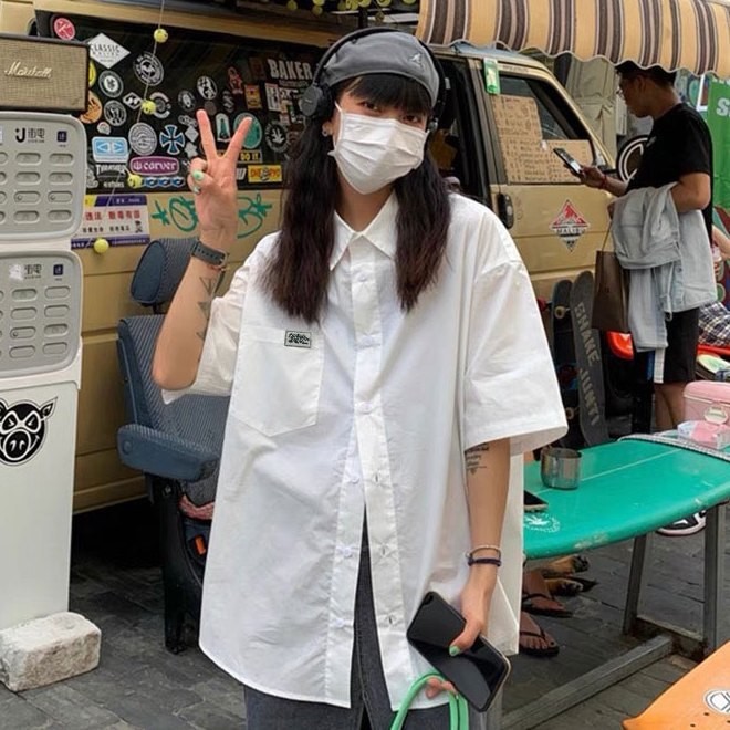 レトロ アメリカン 白 シャツ レディース アウター 春夏 薄手 シャツ 学生 ゆったり 半袖 トップス レディース おしゃれ1379