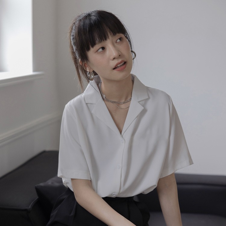 白 シャツ レディース アウター 半袖 シフォン トップス レディース おしゃれ ゆったり リラックス レディース ドレープ シャツ801374