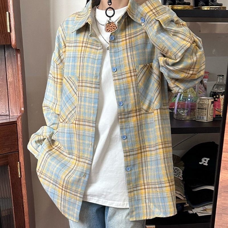 ミー式 チェック シャツ カーディガン アウター 長袖 トップス リラックス レトロ 流 ゆったり シャツ1410