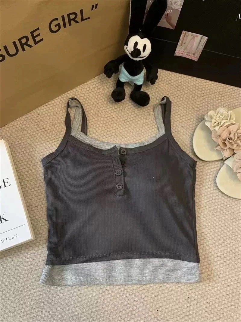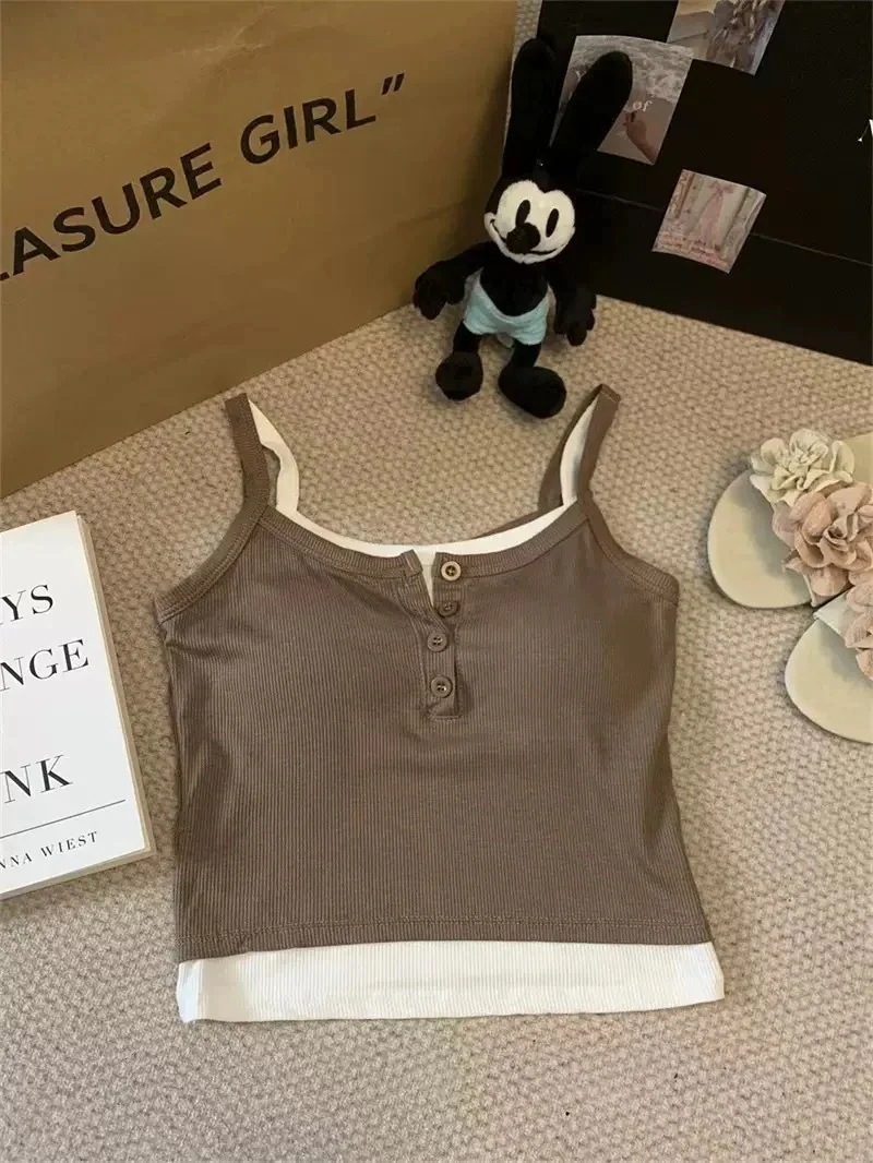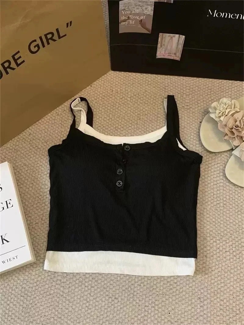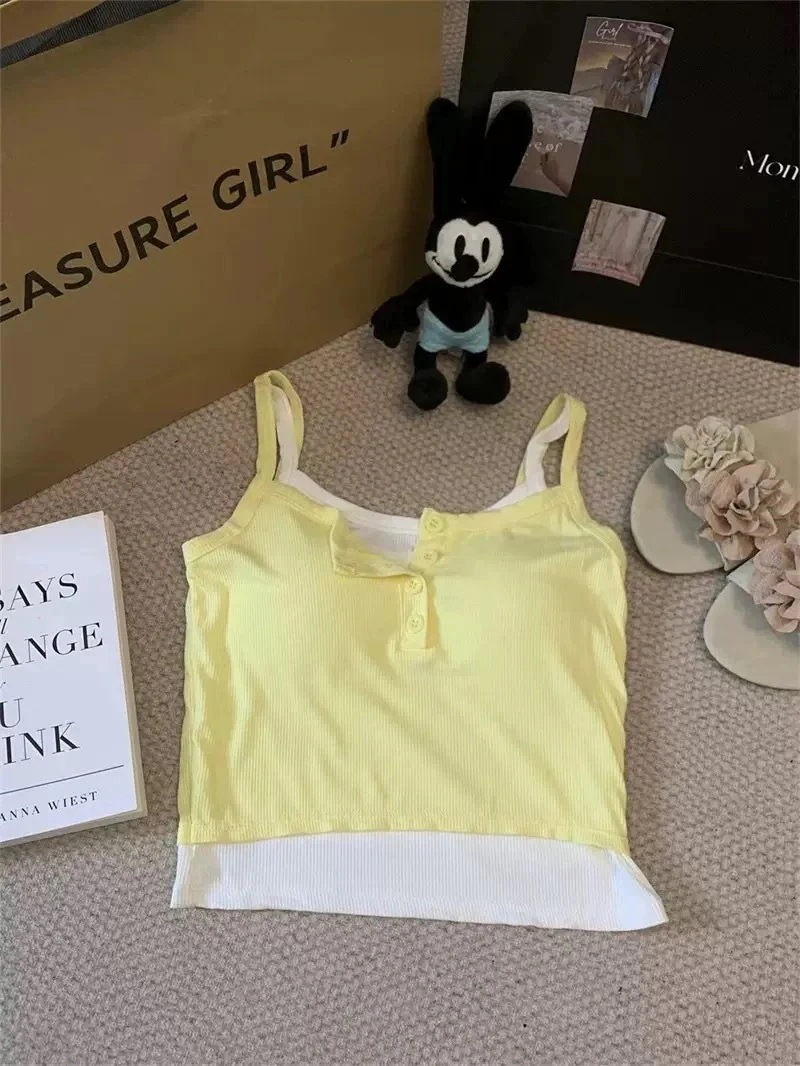 人綿イエローフェイクツーピースキャミソール インナー 女性用外着 タイ風小衆甘ドーパミン美背