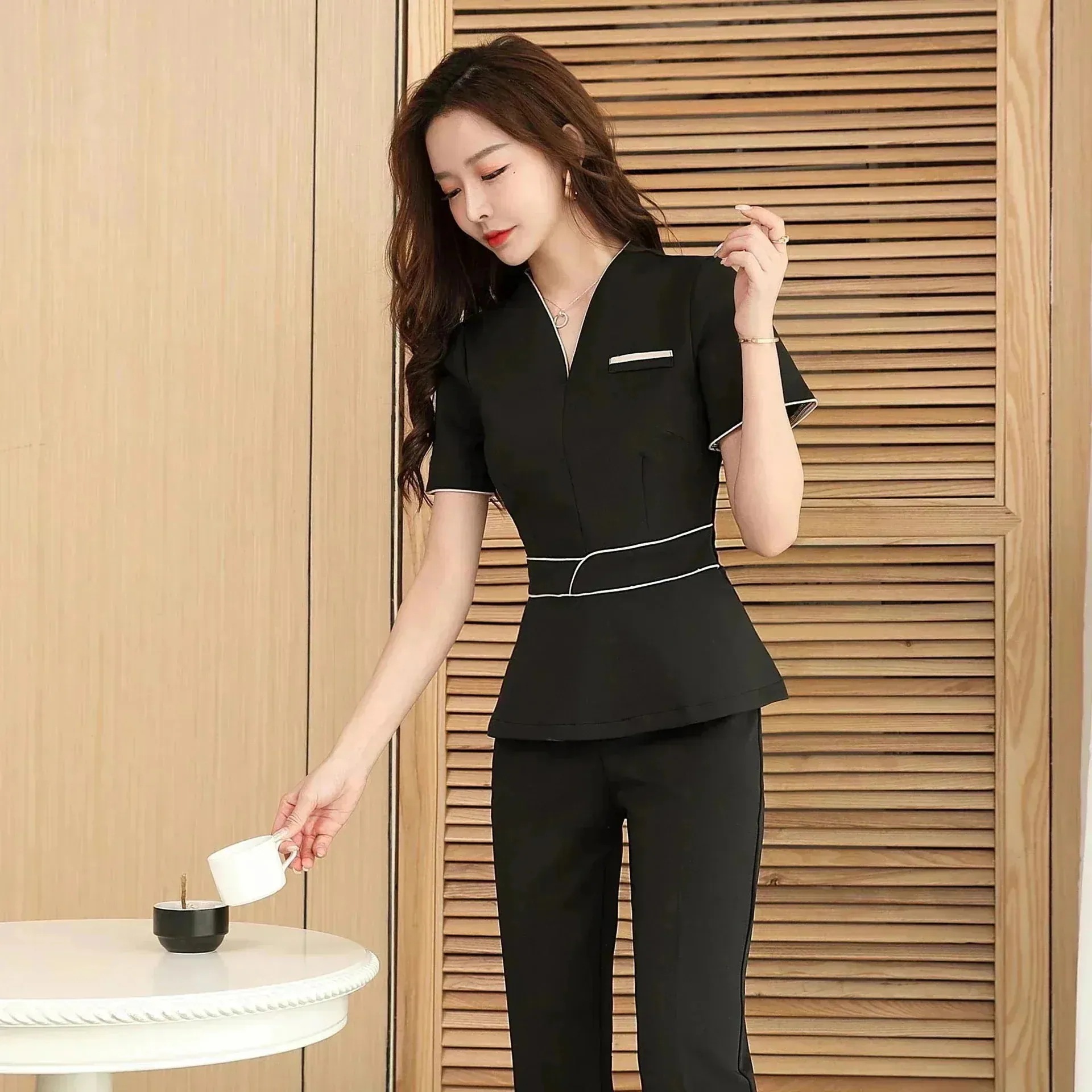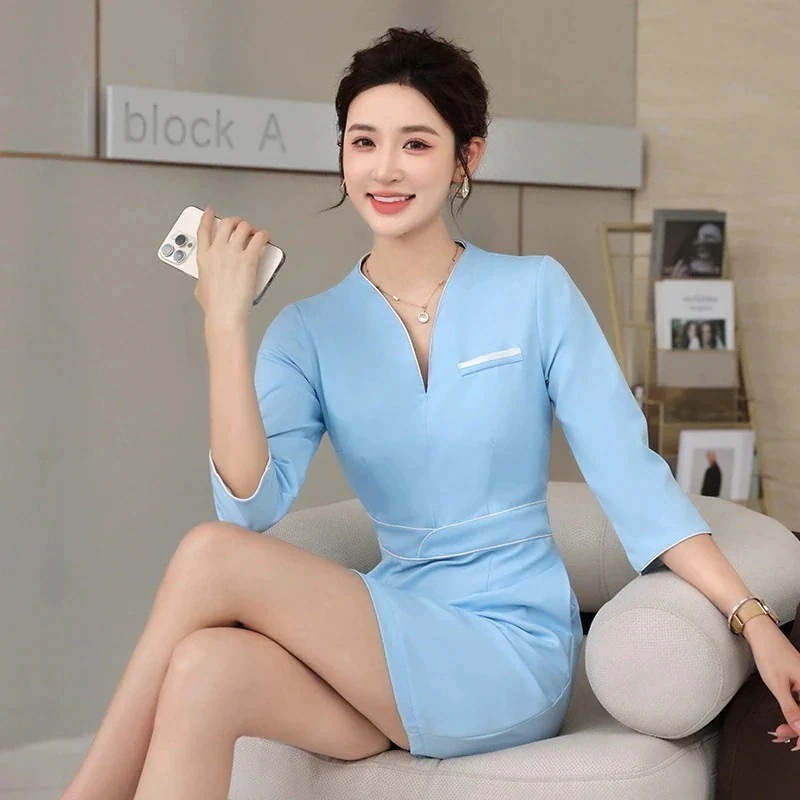 26新作 美容室制服エステ制服 ユニフォーム エステ サロン通勤 タイトスカートレディース 女性 制服 ワンピース 半袖 ジャケット セットアップ 25福袋