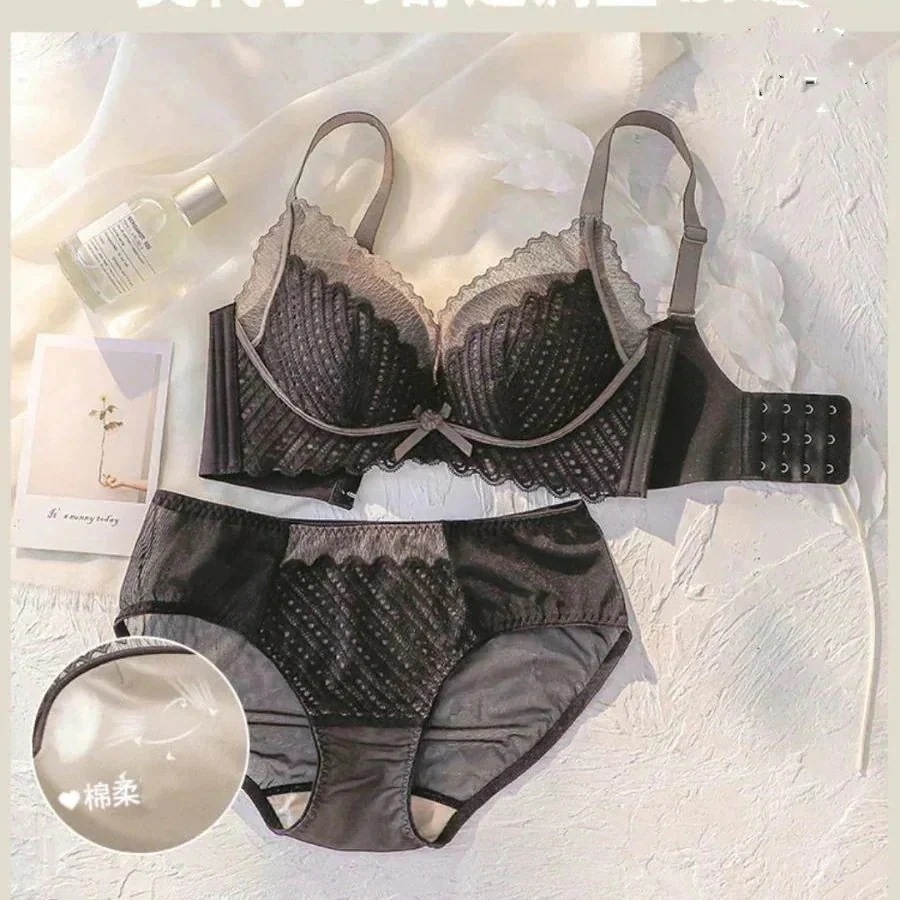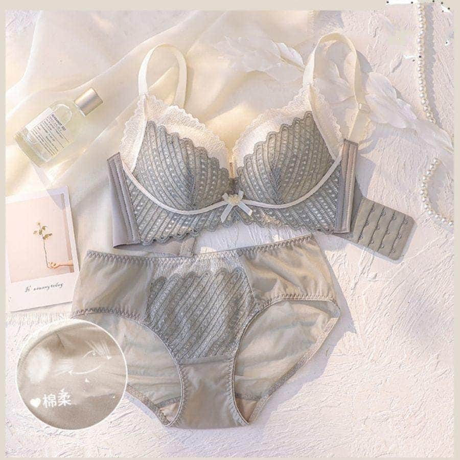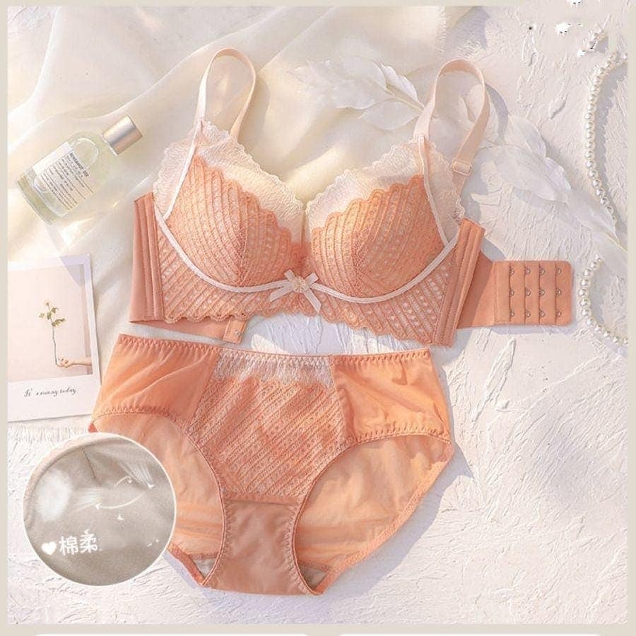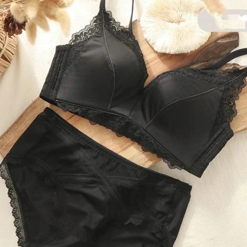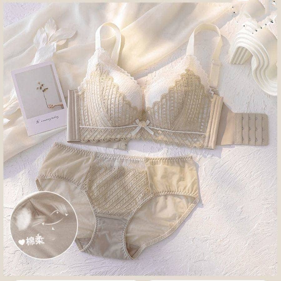脇高でしっかり補正&谷間ノンワイヤーブラジャー ショーツ セット フルレース ブラジャー
