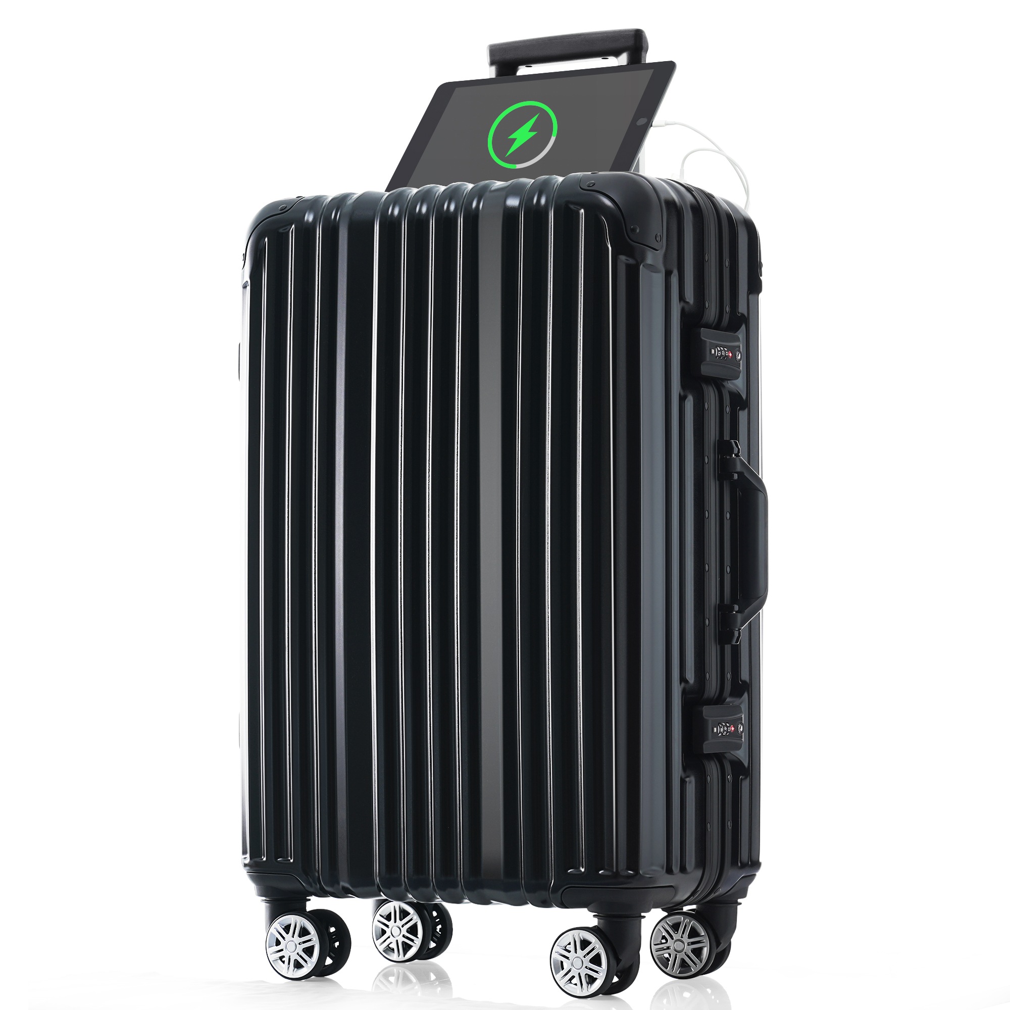 【国内発送】962スーツケース Mサイズ アルミ ストッパー付き USBポート カップホルダー キャリーケース キャリーバッグ アルミフレーム 3日~7日 大容量 超軽量 軽い おしゃれ かわいいダブ
