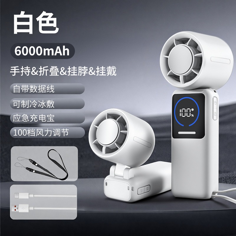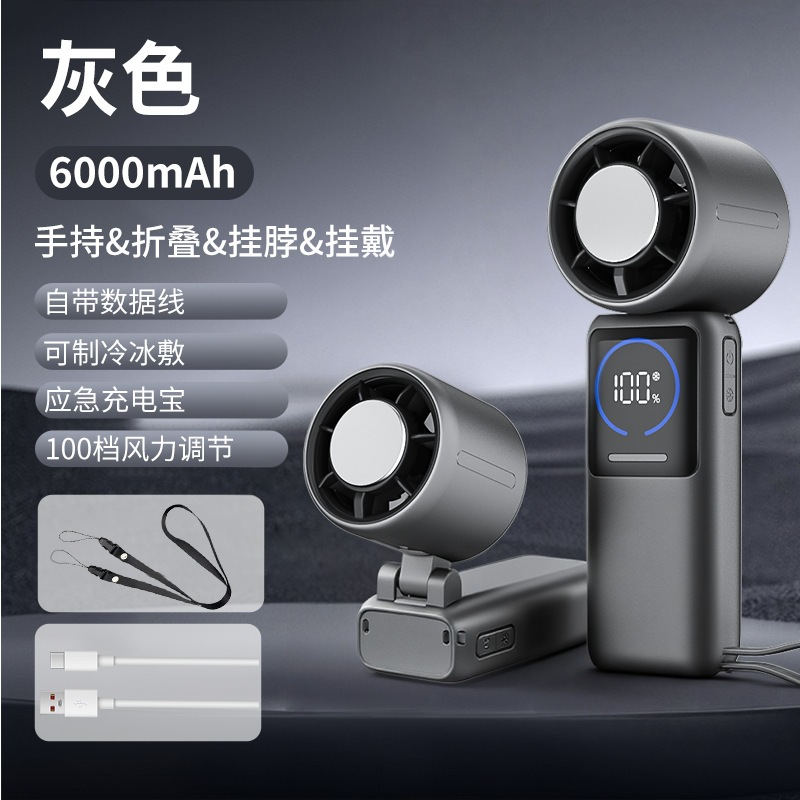 パワーバンクハンドヘルドファンusb充電無段階速度調整ポータブル屋外吊り下げ首小型ファン3c認証