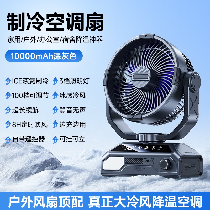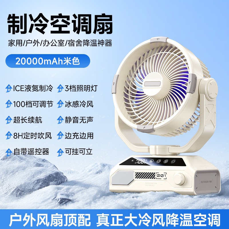 アウトドアキャンプファン家庭用自動シェークヘッド電動ファン強風ポータブルテント天井ファン照明リモコン