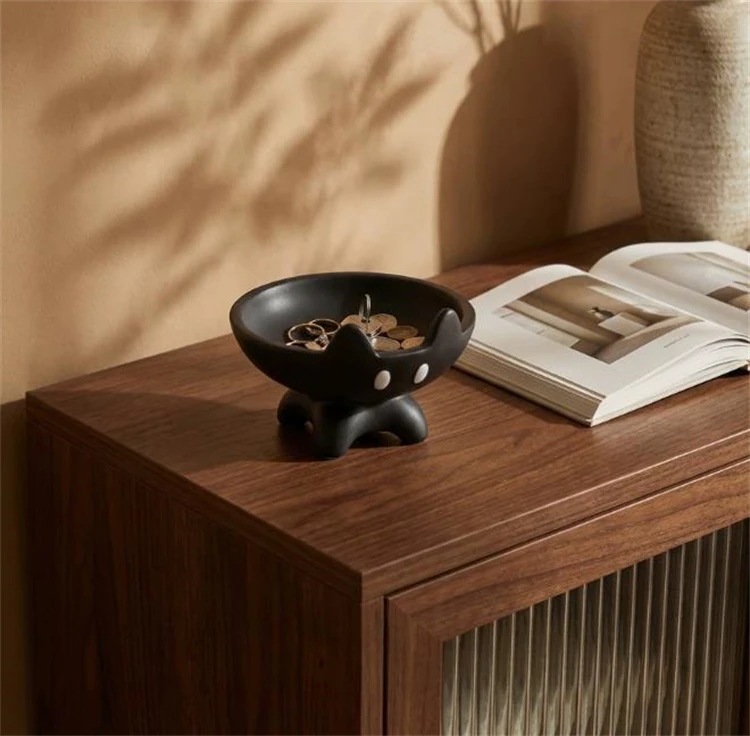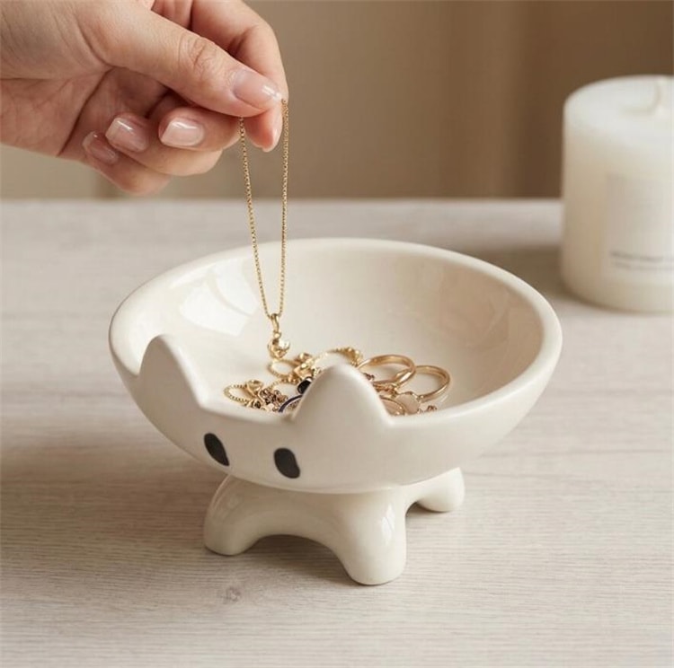 キュートな猫の形をした陶器製小物入れ 黒・白 2 色 お菓子や雑貨を可愛く収納できる