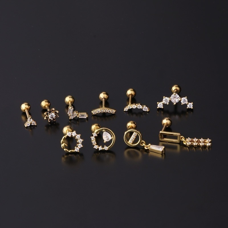 10種類 軟骨ピアス 16G 片耳用 金属アレルギー対応 ファーストピアス レディースピアス kコーティング ネジ式 韓国ファッション 激安