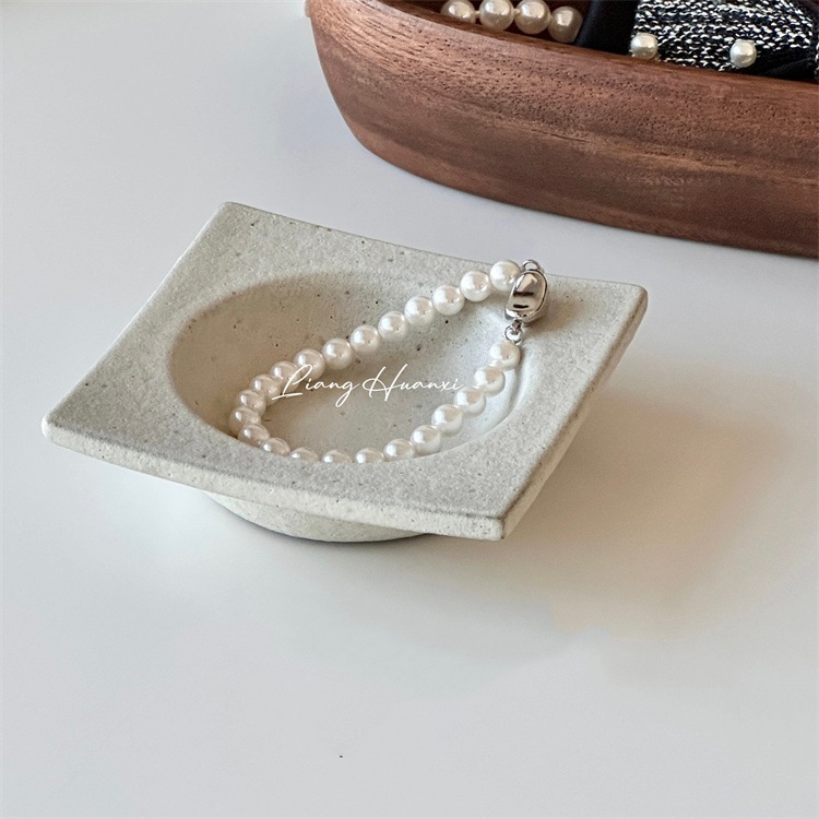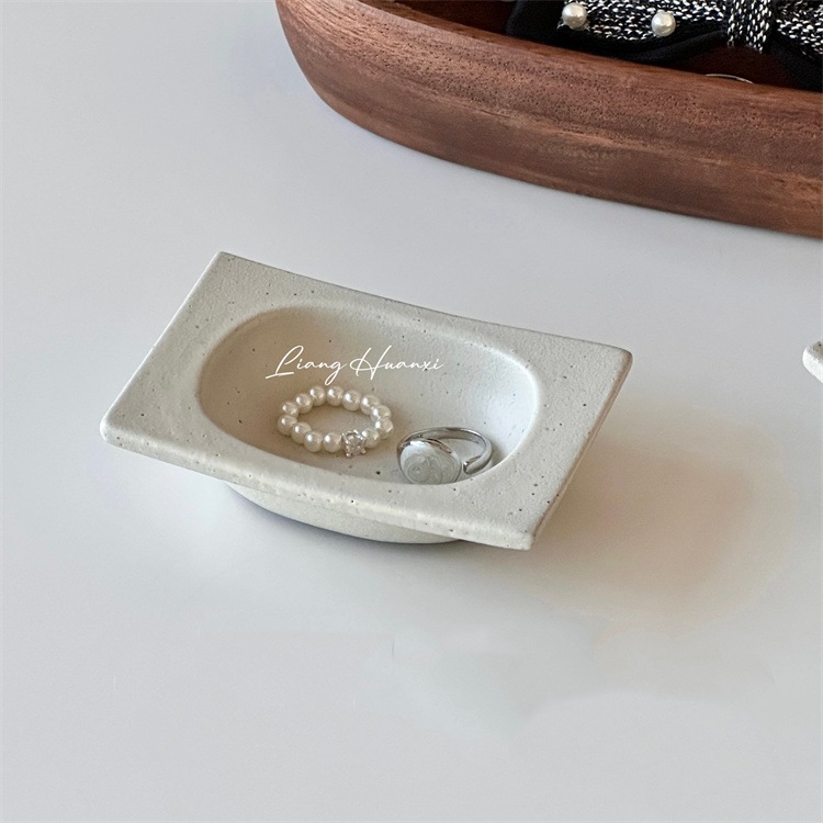 ナチュラル風粗陶トレイ アクセサリー置き・玄関小物整理に使える