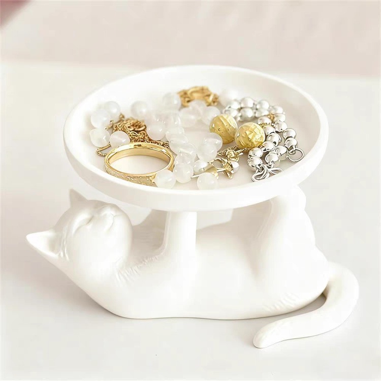 ユニークな猫の置物トレイ プラスチック製 軽量で使いやすい