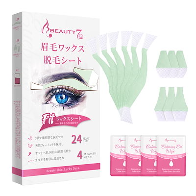Beauty7 眉毛脱毛シート 12組 24枚 入り 脱毛ワックス まゆ毛用 顔 眉毛 フェイスワックス だつもう 口元脱毛ワックスシート 脱毛テープ 敏感肌 除毛 レディース メンズ 兼用(24枚)
