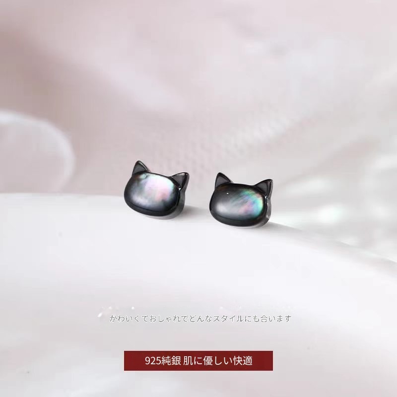 S925シルバー レインボーグラデ黒猫ピアス 可愛い シンプル 大人可愛い