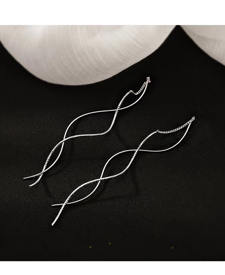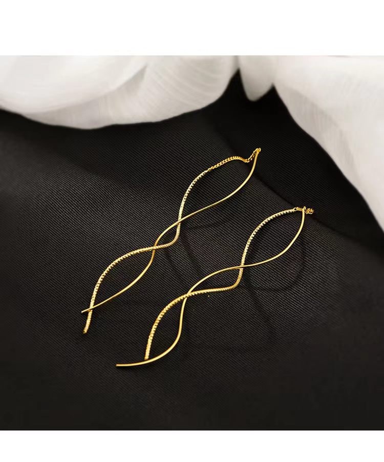 Z小姐 ウェーブラインピアス S925シルバー ロングタイプ 80mm 小顔効果 ゴールド/シルバー