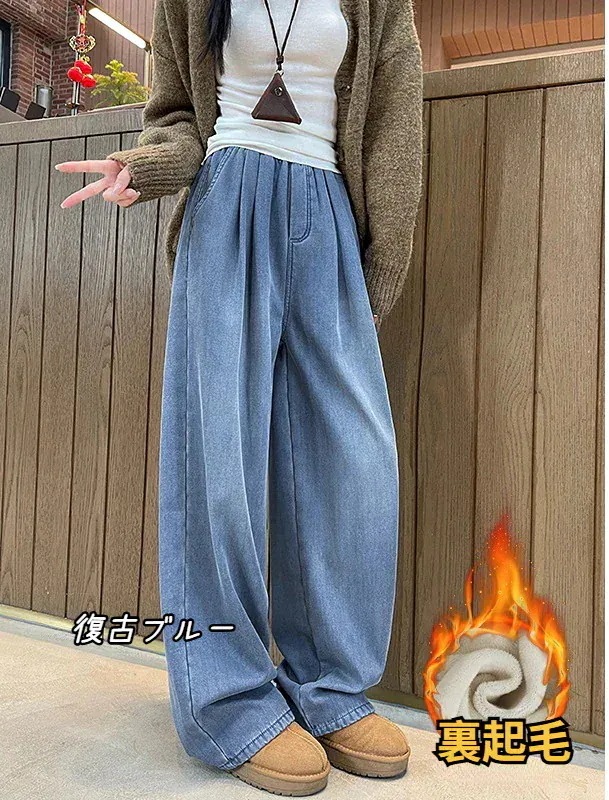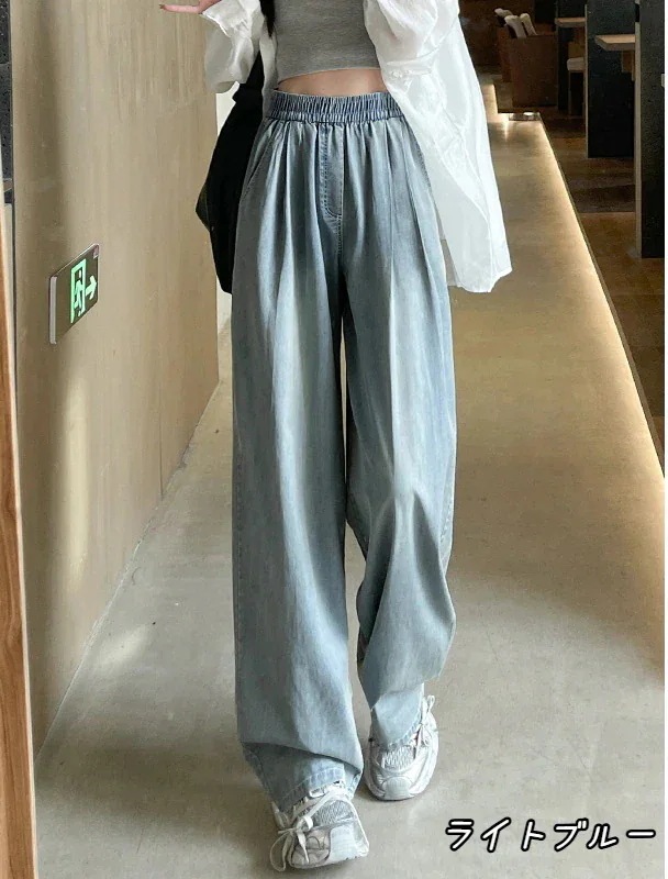 【メガ割激安】春新品 テンセル 柔らかい 防寒防風 デニム パンツ 楽ちん ゴム デニムパンツ ワイドパンツ レディース 大きいサイズ ゆったり ストレートパンツ ボリューム ロングパンツ