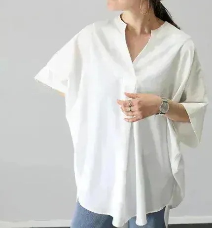 【国内出荷】正規品 理想のこなれ ドルマンシャツ 体型カバー 春夏にも快適 シャツブラウス シャツ 着痩せトップス レディース チュニック Vネック 長袖 薄手 大きいサイズ