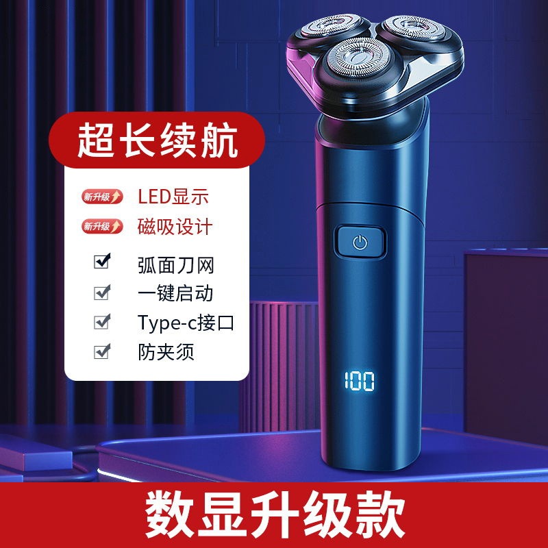 電気シェーバー磁気デジタルディスプレイ三頭メンズポータブル充電式シェーバー磁気シェーバー