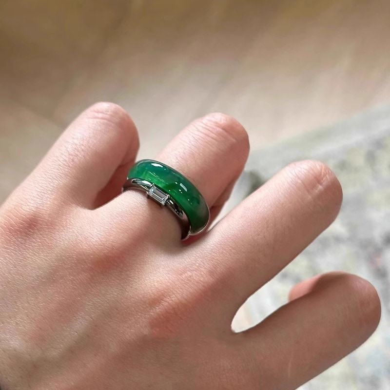 天然グリーンカルセドニー 指輪 レディース 2026新作 ブラック 細かい点 人差し指の指輪 重ね着用 2点セット指輪