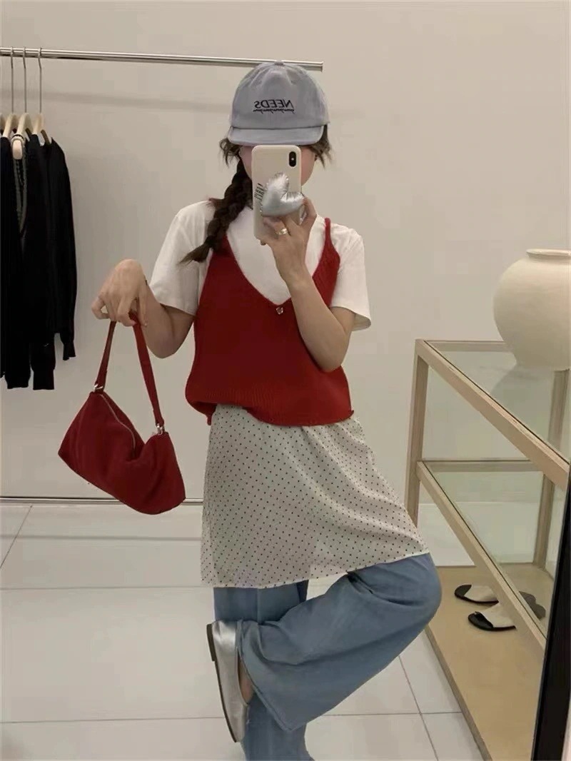 重ね着 キャミソール ビスチェ レディース 2way ベスト ニット プルオーバー トップス ニット編み ニットベスト ニットキャミソール Vネック ゆったり ストレッチ キャミ ノースリーブ レ
