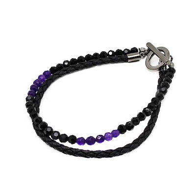 ブレスレット ブラックスピネル 合皮 2連 ガラスストーンPP[5651710]