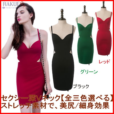 (3色有り)ボディコン ワンピース/深Vネックワンピース/セクシーボディコン/結婚式/二次会/パーティードレス/ミニワンピ/キャバ ドレス/ナイト ドレス 美尻 レッドブラックグリ