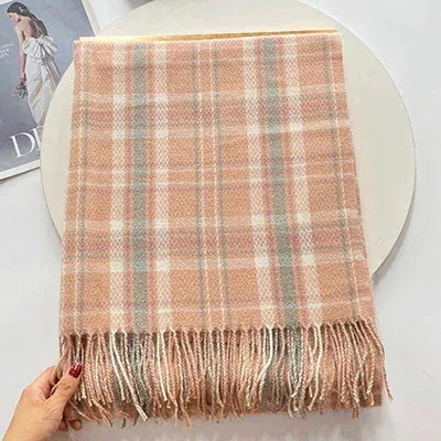 プレゼント用に購入しました。14日に注文して17日に到着しました。配送早くて助かります。色味がサイトでの感じと少し違ったみたい。ベージュはクリームみたいな色ピンクはサーモンピンクの少しピンク寄り。レッドはえんじに近い赤。まあ許せる範囲でした。チェック柄は少し生地の厚みがあります。ワンカラーの2倍ありました。フリンジも綺麗によってあり値段以上の品物だと思います。匂いは開けてないのでわかりません😂シワとかもなくプレゼントに最適でした✨✨🎄🎄 -