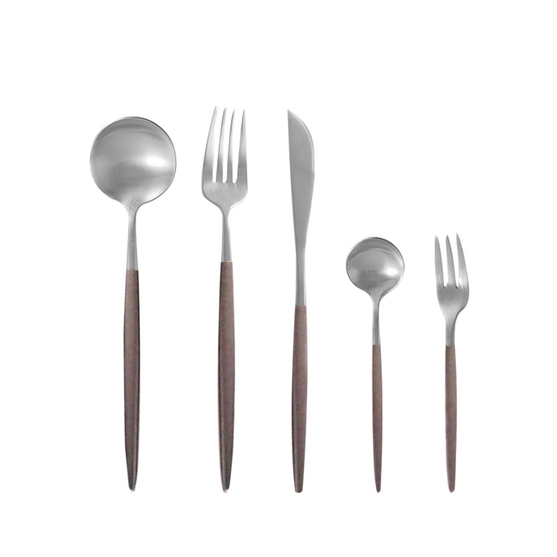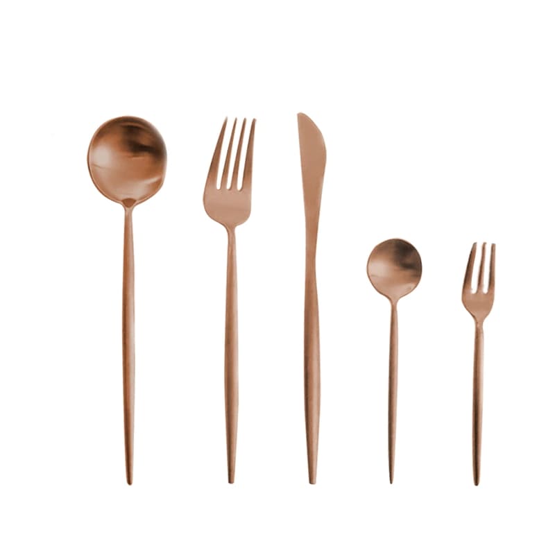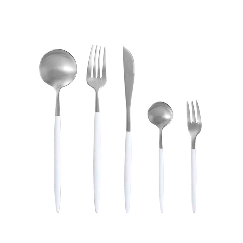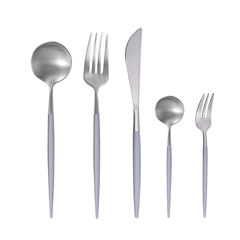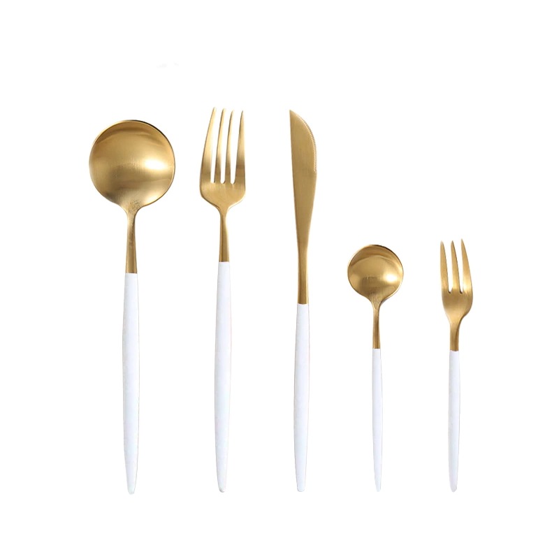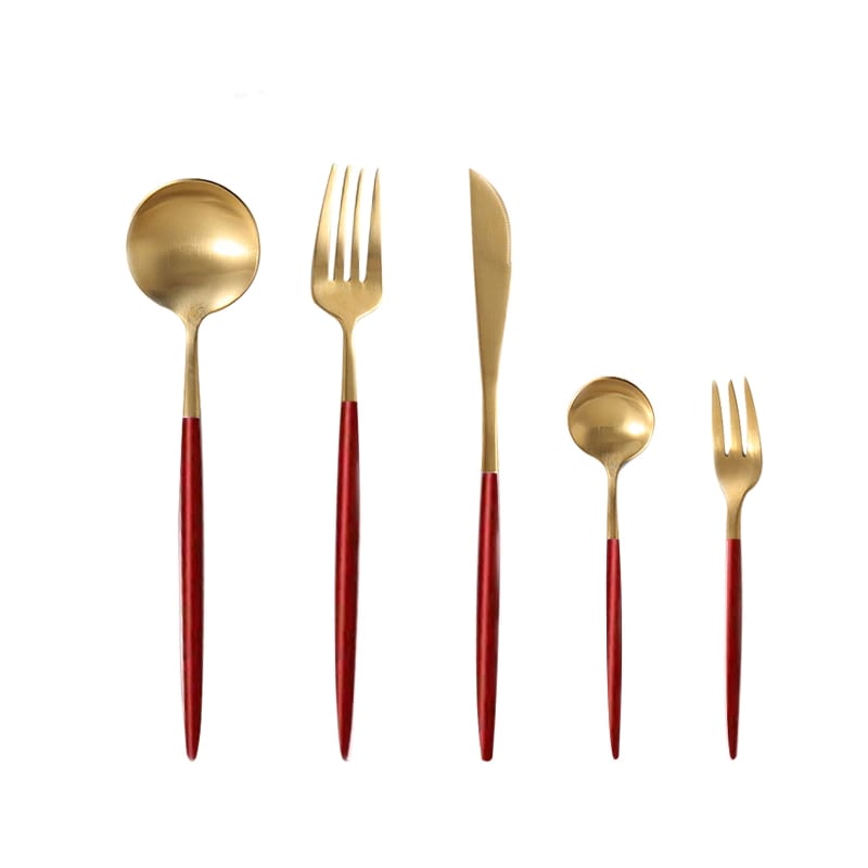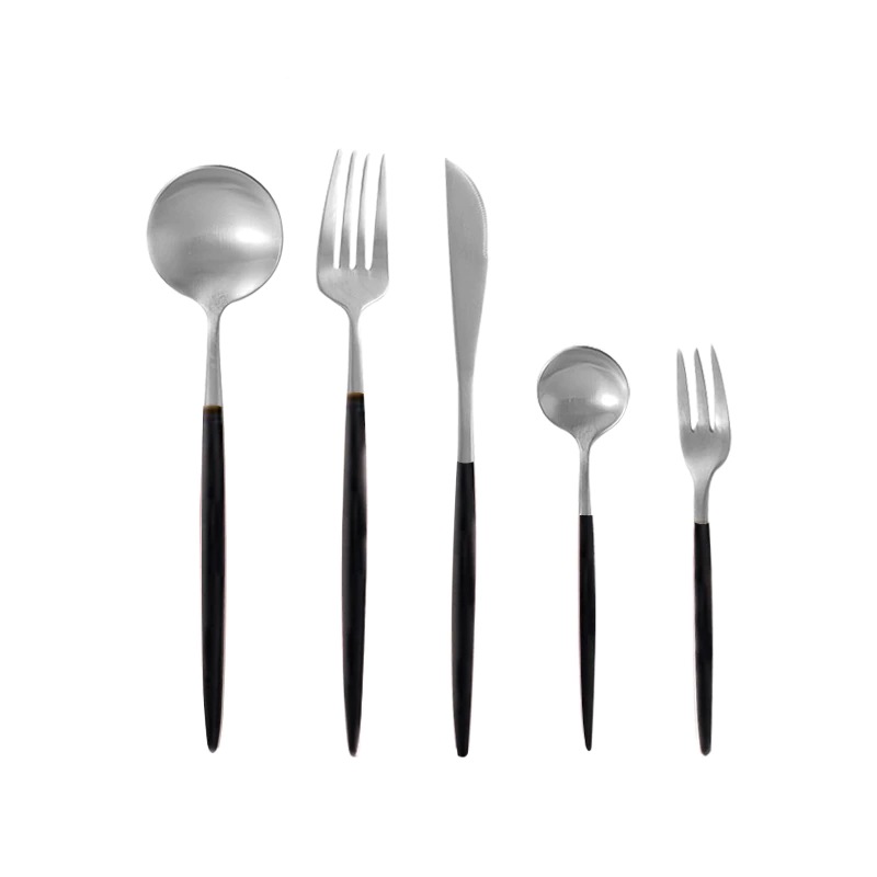 本当は黒×ゴールドを考えていましたが、毎回食洗機にかけたりして、数年後に買い足しなどなったときに、クチポールの本家ではないので難しいかも…と考え単色タイプにしました。またデザートフォーク、スプーンまでセットの5本組がこちらのサイトだけだったのでこちらのショップに決めました。箸のおまけより、要るものを。