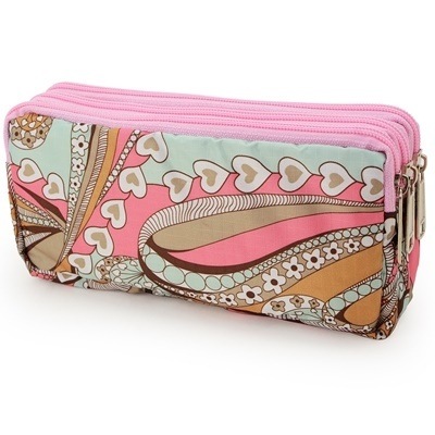 ファスナーの部分が高さが違います。段々になっていて収納量が、大中小となっています。ファスナーの滑りは良くないですけど値段相応の商品だと思います。(* ̄∇ ̄)ノ(* ̄∇ ̄)ノ(* ̄∇ ̄)ノ -