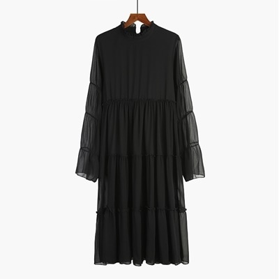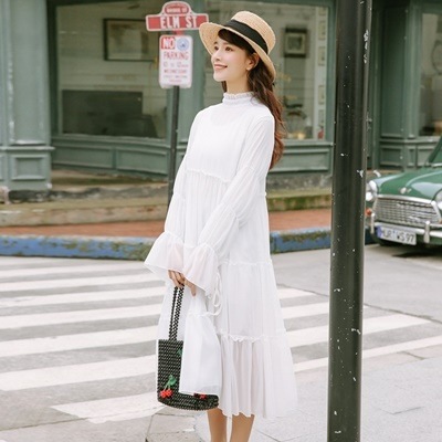 人気のおすすめモデル韓国版のワンピース2019春モデルの木の耳元がゆるやかに痩せた純色のワンピース