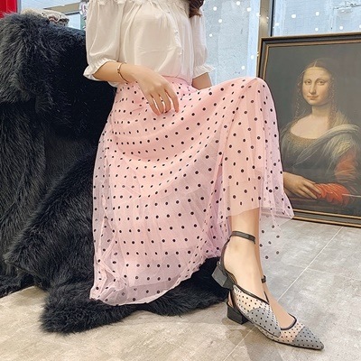 夢の夢の家の婦人服は春夏2019新金の韓版のレジャーの円点が緩めて腰の波点の網の糸のスカートの中で長い金を緩めます