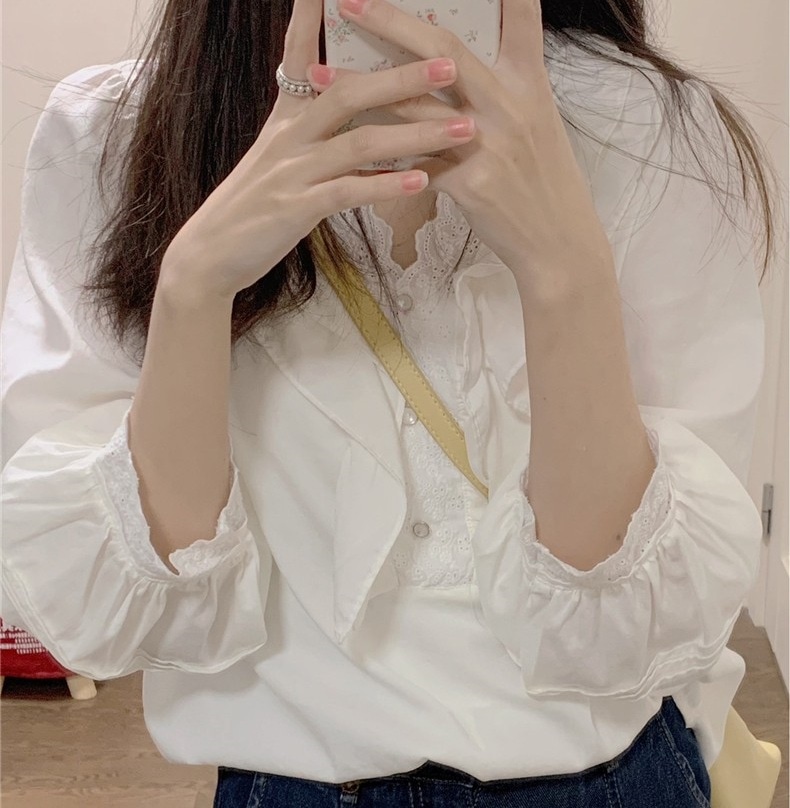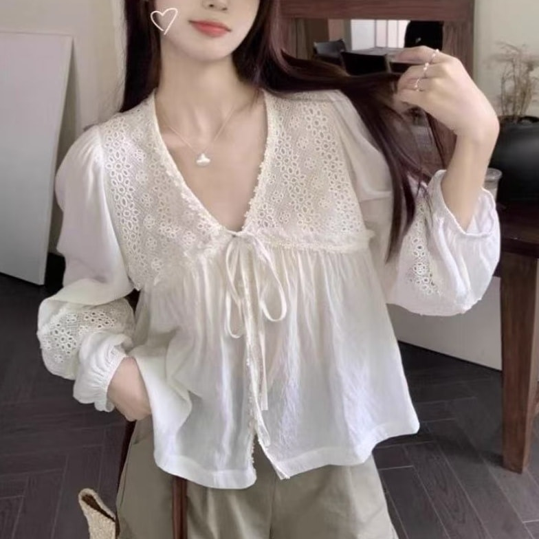 ⚫︎白のコットンレースは、可愛いけれど、生地がかなり薄いので下に何か着ないと着れないかも⁈ バスト88センチ、着れたけれど、やや胸周りキツいのでもうワンサイズアップのが良かったかも⁉️着丈かなり短いのでパンツの上だと動くと肌が出るかも。袖口シャーリング、短めです。