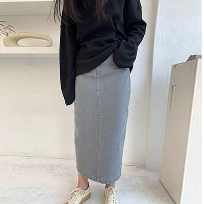 2019 NEW 春 ドロップラインポイントデニムロングスカート