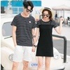 半袖ボーダーTシャツパンツセット親子ペアカップル レディース Tシャツ パンツ メンズ 2点セット ストライプ 親子 お揃い  ペアルック 親子服 家族 上下セット ワンピース