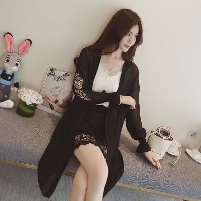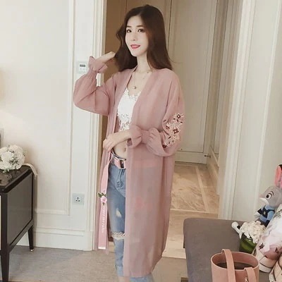 G030レースシフォンカーディガン ピンク/グレー春夏秋冬ジャケットアウターブルゾンカーディガンレディースシフォンチュニック花柄韓国ファッション