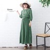 入金して2日後にポストに投函されてました。画像は到着後に撮ったのでシワが目立ちますが、洗濯後はシワを伸ばして干せばノーアイロンで着られます。155cmでくるぶしの長さです。裏地も長さがあり透ける心配は無さそうですし、首回りの深さもちょうど良いです。袖は肘と手首の中間くらいの長さでした。 -