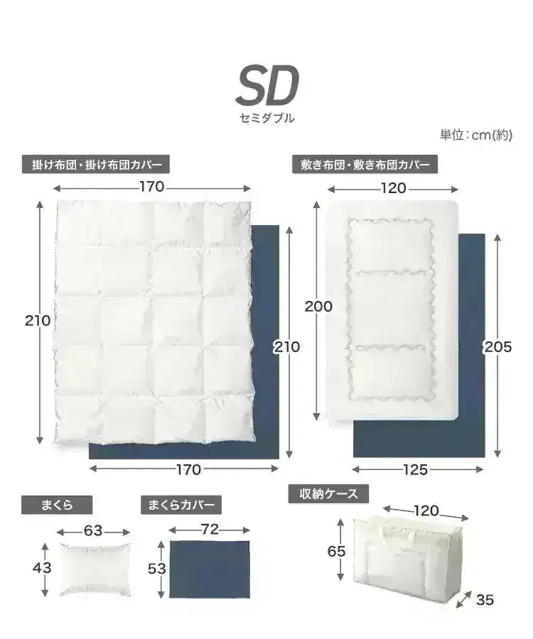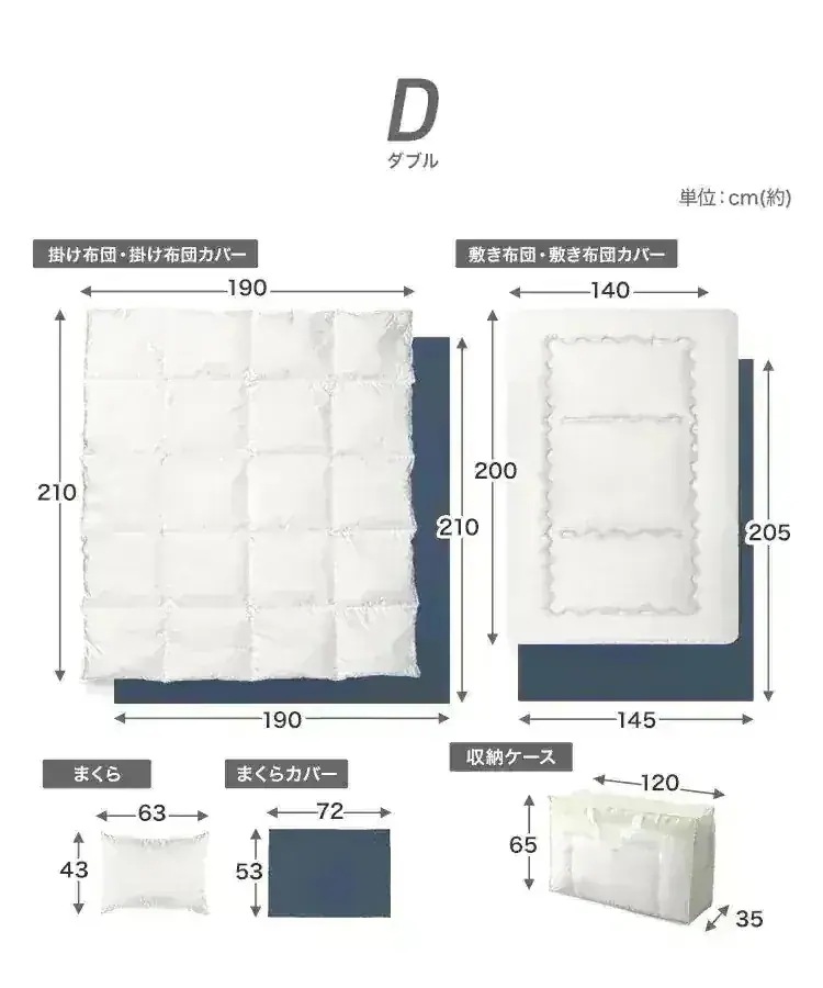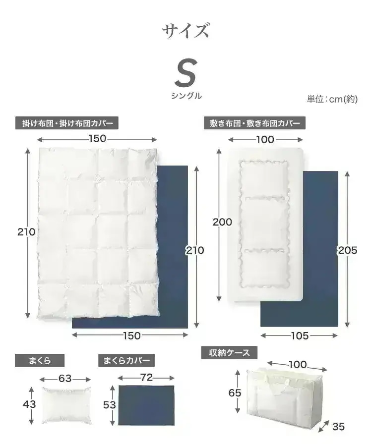 カバーと敷布団は良かったですが、掛け布団がすごく臭いがして干したり、乾燥機で温めたりしてすこし良くなりましたが使うのに勇気いります。