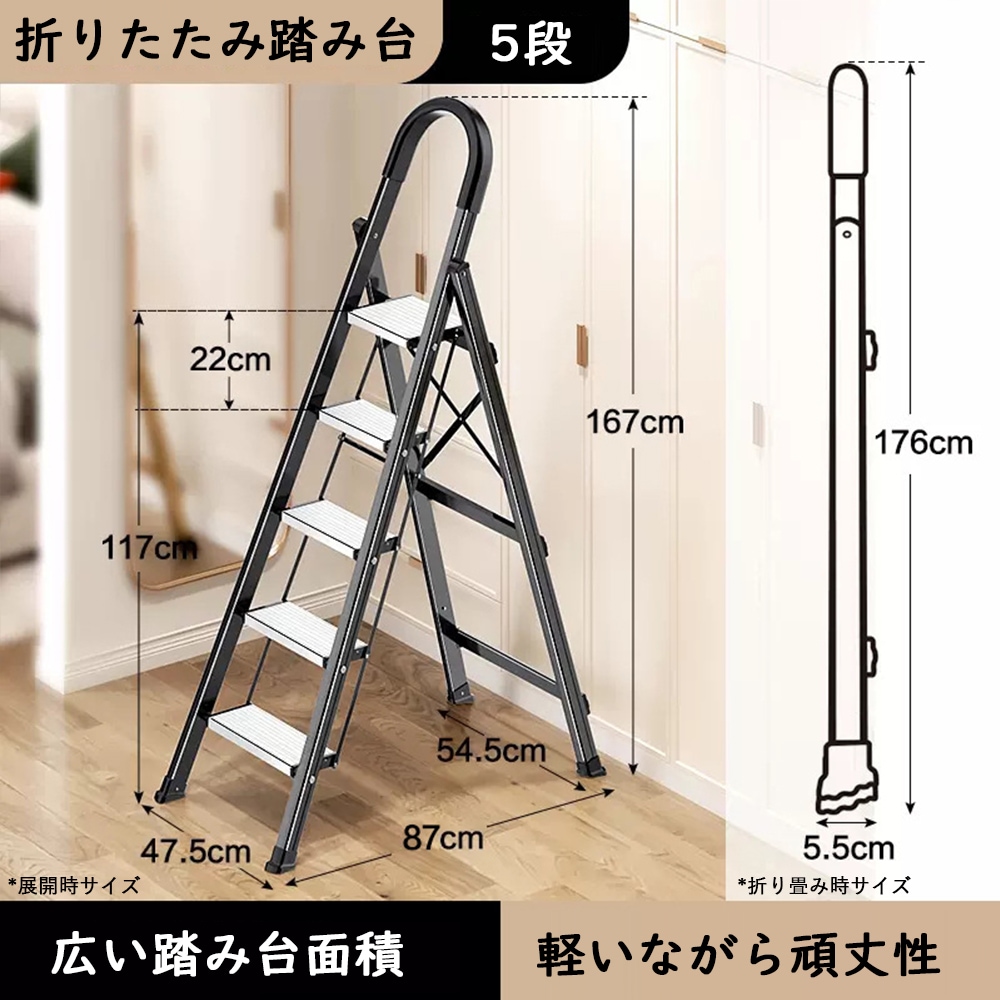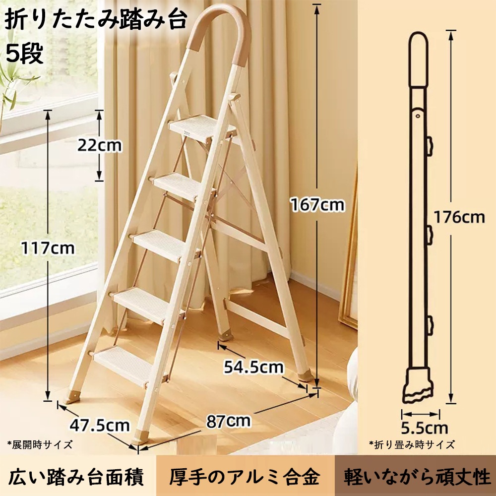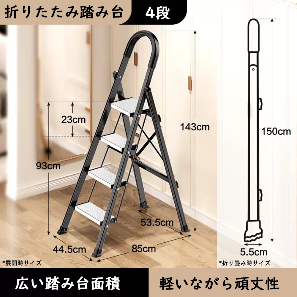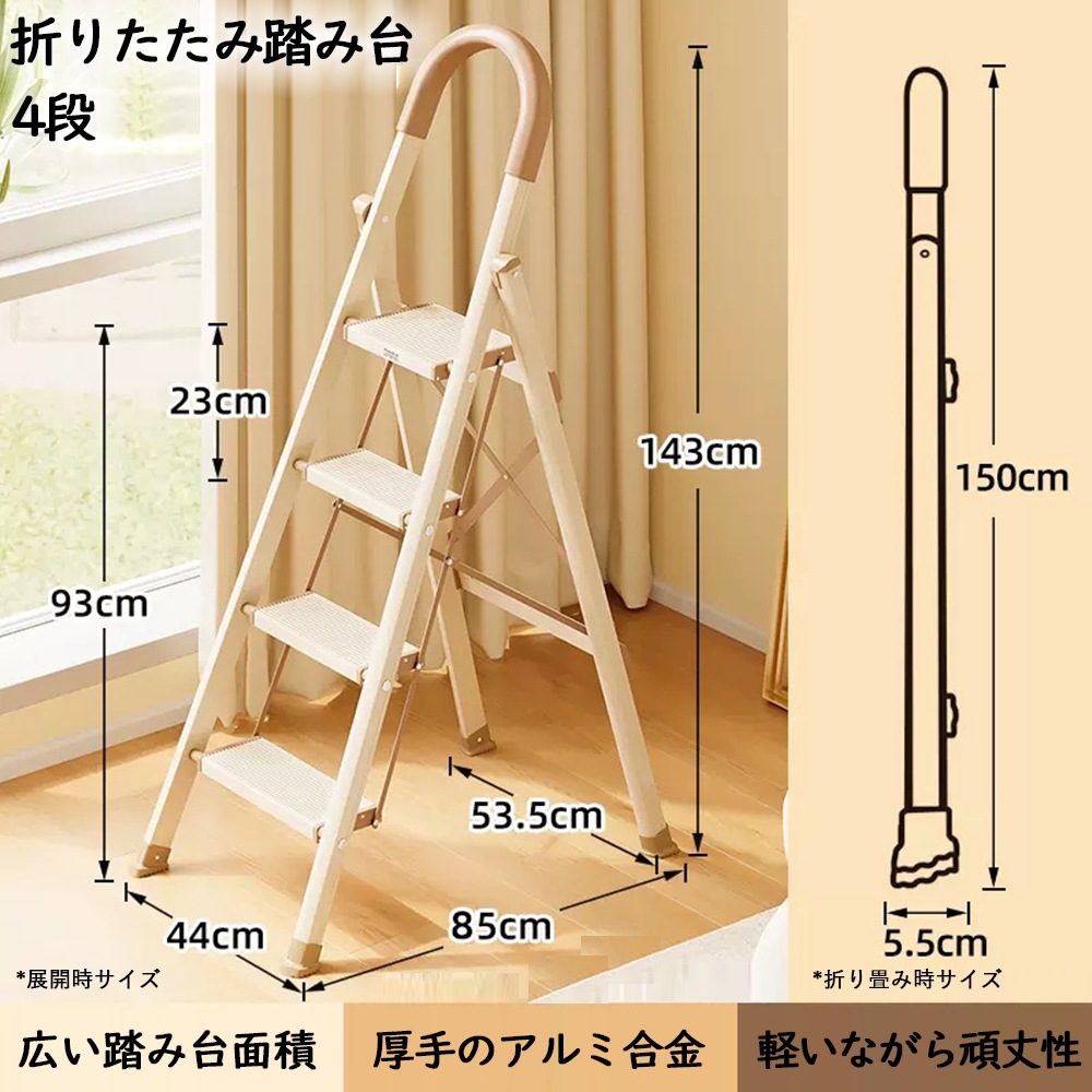 脚立 4段 折りたたみ 5段 アルミ ステップ 踏み台 ステップ台 インテリア おしゃれ 軽量 北欧 フォールディングステップ 梯子 はしご ラダー 滑り止め 持ち手 手すり 安定性 引っ越し 新生活