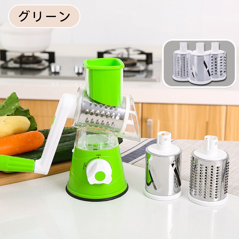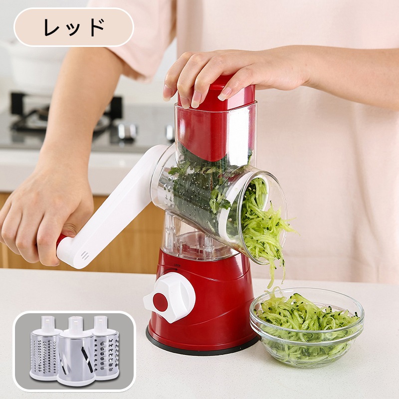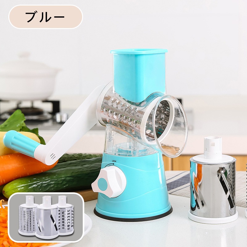 野菜スライサー 手回し式 回転式 マルチスライサー すりおろし スライス 細切り 1台3役 万能 千切り 野菜 カッター ハンドル 回す 簡単 時短 千切りくるくる簡単スライス