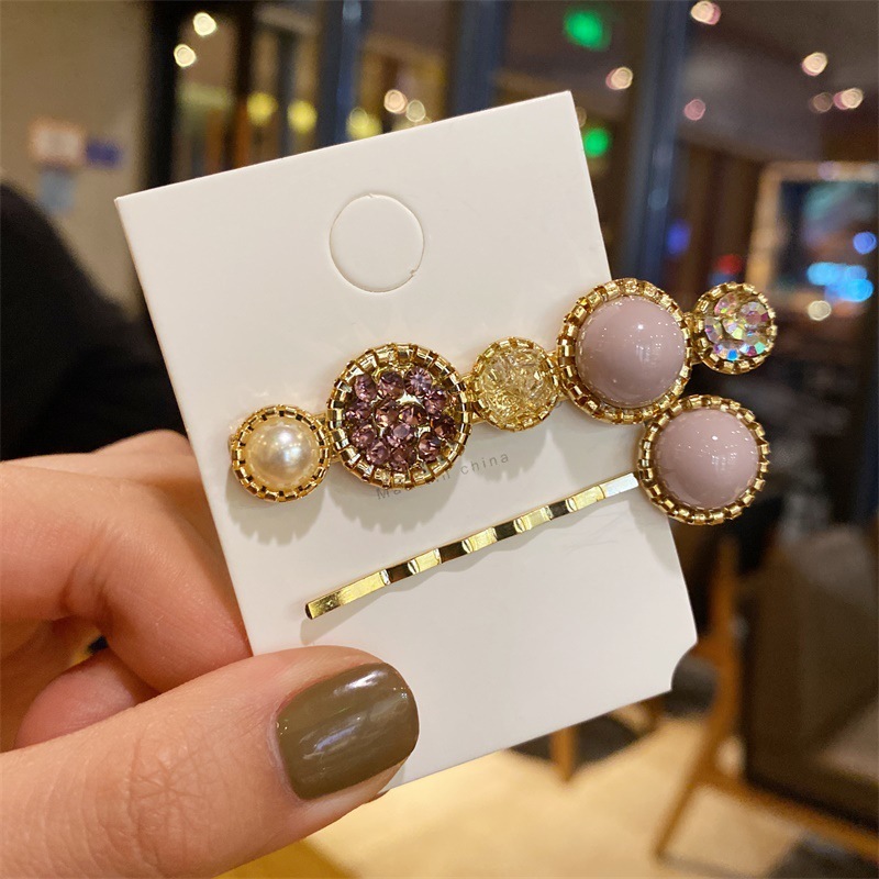 韓国のヘアピン頭飾りシンプルなラインストーンヘアピンネット赤いサイドクリップワードクリップガールダックビルクリップヘアアクセサリー一世代
