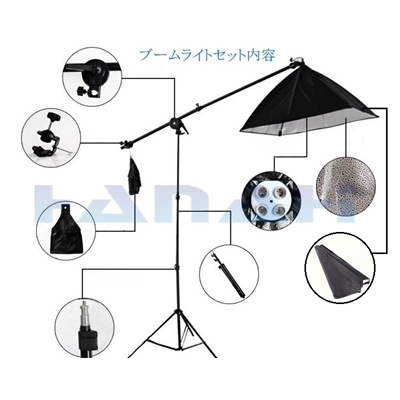 70x50 ソフトボックス4灯式ライト+ ブーム セット 撮影照明 4灯ソケット ライト 写真撮影
