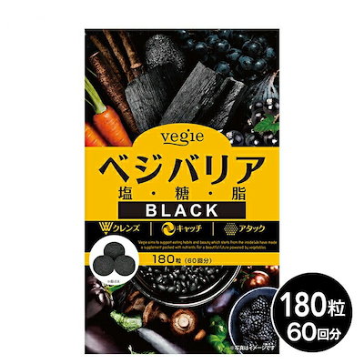 ベジエベジエ ベジバリア塩糖脂ブラック 180粒 (送料無料) サプリメント 脂質 糖質 塩分 チャコール 炭 活性炭 アクティブファイバー カリウム キノコキトサン vegie[Z]