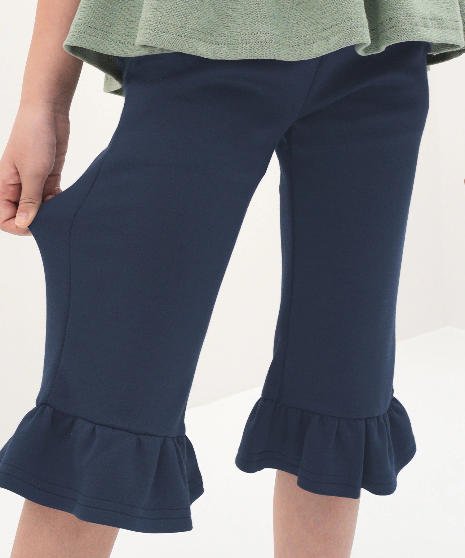 ワンピースの下に着る短すぎない長さのピッタリしないズボンが欲しくて購入しました。長めのトップスと相性がいいです。夏にレギンス代わりに履かせてます。