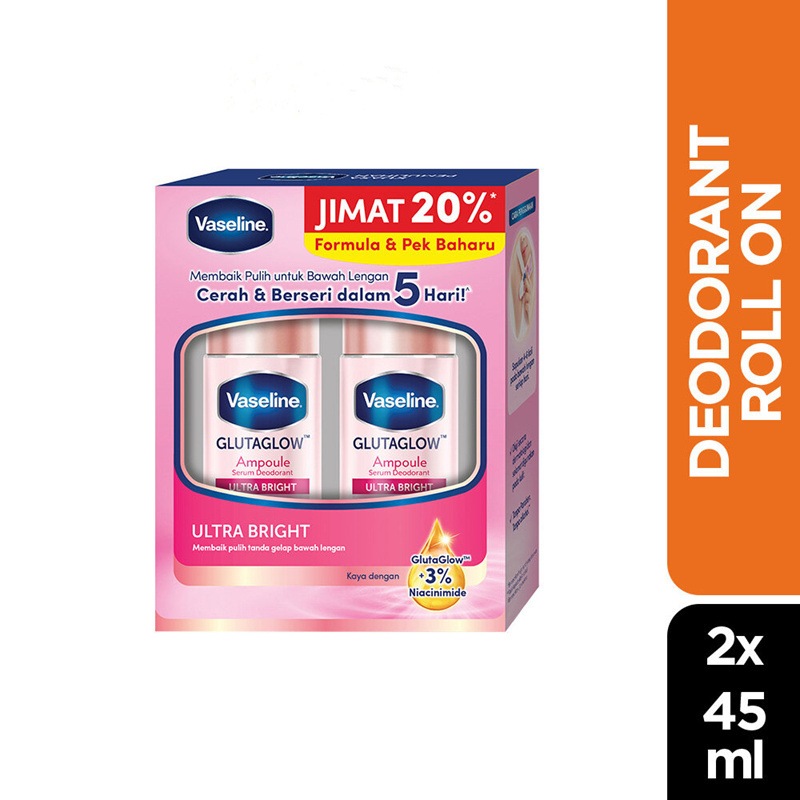 [ 2pcs ] Vaseline Woman Roll On Deodorant 45ml (Ultra Bright / Bright Renew)
