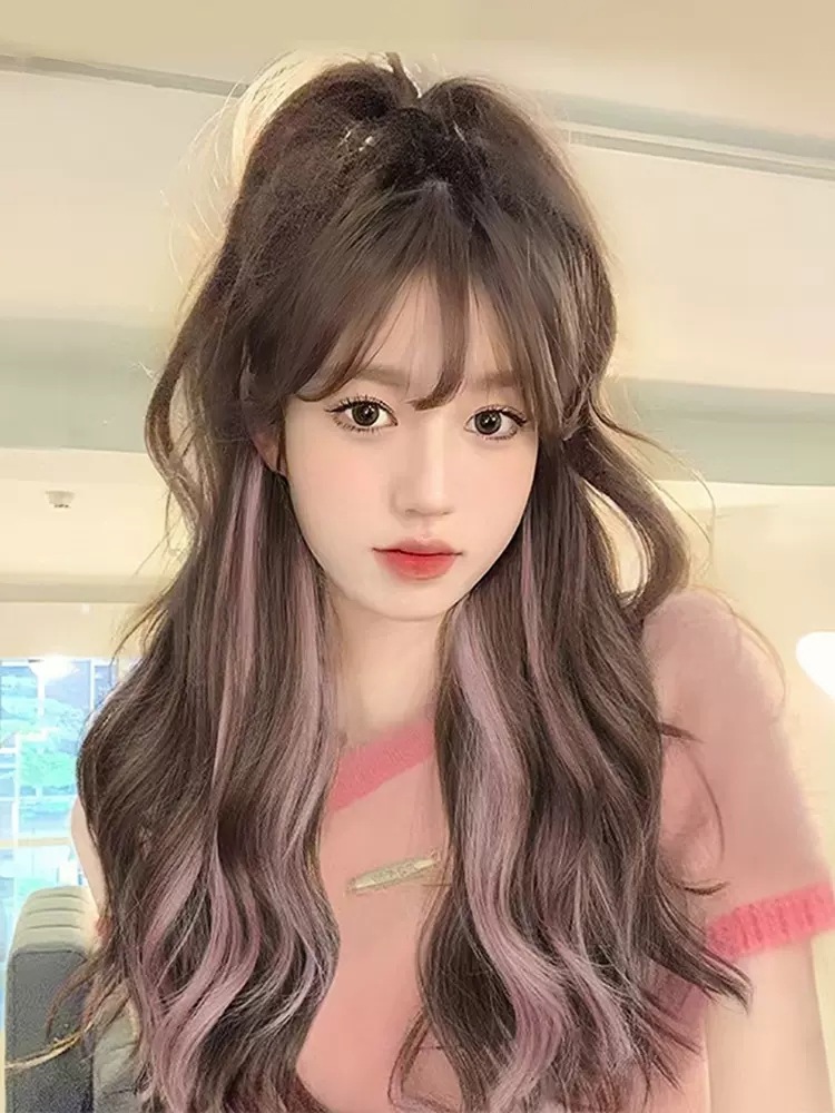 韓国 フルウィッグ コスプレ lolita 前髪仮装 ピンク 少女 ロングカール 耐熱 J180