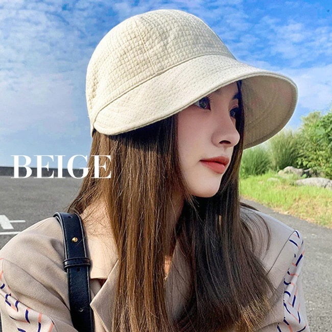 何回か洗った3COINSで買ったバケットハットとの比較です。右が本商品です。安いのにとてもしっかりしています。色もベージュというよりアイボリーでかわいい。サイズもちょうどよかったです。この春夏たくさんかぶります♪