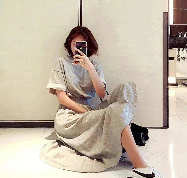 レビューに大きめ、Lを注文したら2XLが届いた、ウエストゴムゆったり、とあり、普段XLのスカートを着る私にはちょうどいいかもと買ってみたら大正解!袖、襟ぐり、丈の長さも私の理想とピッタリでした。大抵XLのスカートは普通サイズより丈が長くなってて低身長の私には長すぎて足首までくるけど、これはそれより若干短いので、着たらとてもかわいい。ポケットも付いてて大のお気に入りになりそうな服です。