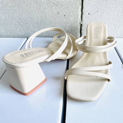 ベルト?ストラップ部分は少し緩めでモデルさんのようにくるぶしに1つ引っ掛ける履き方は出来ませんでした。 -