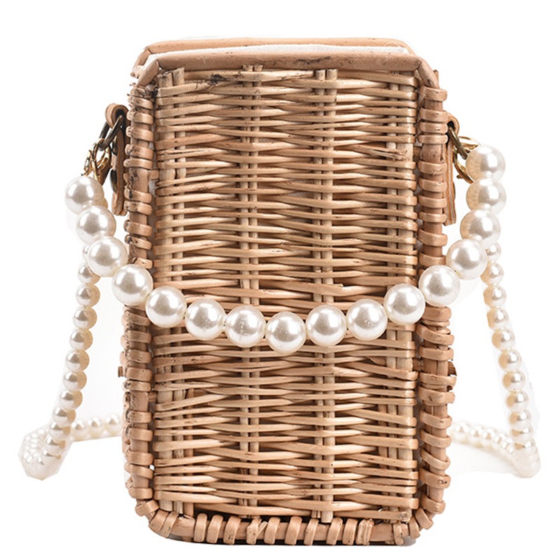 竹編み上げ ミニバッグ 女夏 かごバッグ 真珠 チェーン 肩掛け 斜めがけ ショルダーバッグB174