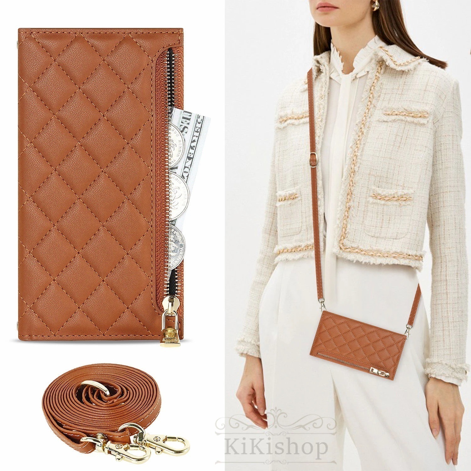 写真よりも少し明るいピンクで光沢感もリッチな感じです。手に掛けるチェーンもケースの中に入ってました。ケースの中の収納は、ぬわれている所で区切られているので、上の方は切符とか切手なら入るのかな?と、個人的には思いました。フタのマグネットもしっかりしてます。ただ、入金から到着まで13日かかりました。追跡番号みたいなものもありますが、着予定の日にちもコロコロ変わり、表示も英語なので、本当に届くのか不安になりました。ので、星4つにさせて頂きましたm(_ _)m